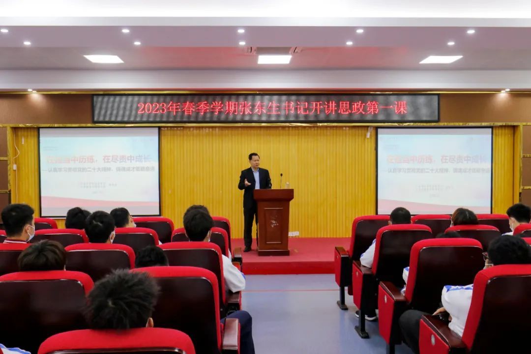 校长张湘伟以“激浪扬帆新时代,昂首奋进新征程”为主题开讲“思政第一课”。张湘伟强调“教育是国家发展的根本”,学校要立足长远发展,进一步落实好立德树人根本任务,为党育人、为国育才。他强调,同学们要重视专业基础、努力深造、提升自我,以孜孜不倦的精神努力钻研学科知识,培养自主创新能力,树立远大志向,在新时代昂首奋进,踏上新的征程,成为优秀的专业人才。张湘伟通过和同学们分享自身学习经历,告诫同学们要珍惜大学时光,鼓励大家充分利用学校资源不断提高自己的知识素养和能力,拓展自己的知识面,把握学习机遇,在学好课程的同时,注意自身的道德修养,树立正确的思想观念,严守道德底线,端正态度,严于律己,全方位提升自我,努力成为德智体美劳全面发展的新时代青年。