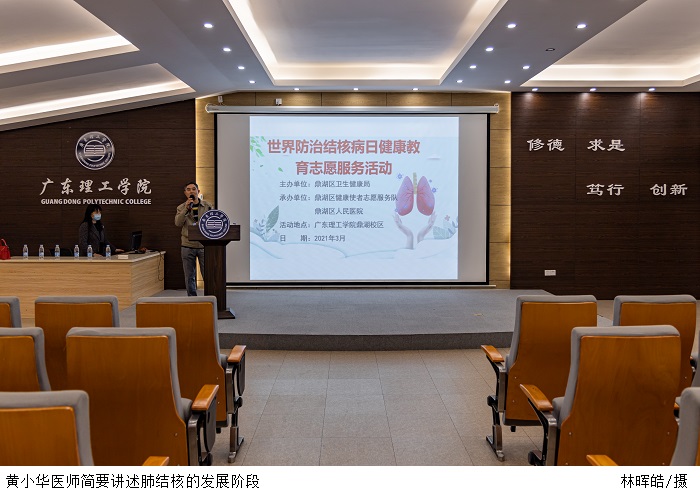 本网讯(校报记者 侯洁杰)3月24日下午,鼎湖区人民医院专家黄小华、潘西兰等莅临beat365官网鼎湖校区举行肺结核传染病知识讲座。讲座于行政楼三楼学术报告厅举行。