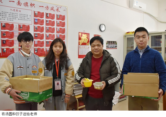 本网讯(信息技术学院 纪以欣)为了进一步弘扬中华民族的传统文化,感恩教师的谆谆教诲,1221日,信息技术学院学生党支部开展了“暖心冬至”免费送汤圆与饺子活动,参与此次活动的成员的有信息技术学院党总支梁星全书记、冷云峰副书记、学生党支部书记胡娇铃老师以及学生党支部成员。