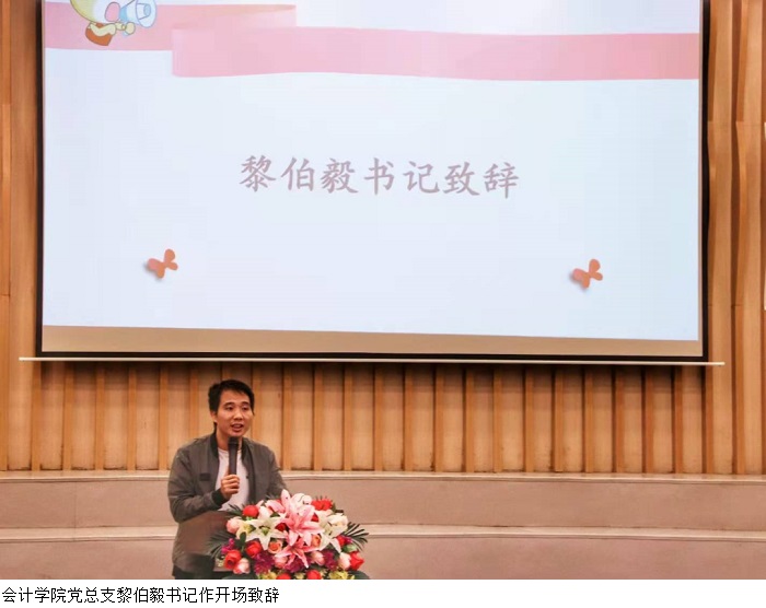 会计学院党总支书记黎伯毅作开场致辞。他表示,本次大赛目的为提高新生班级凝聚力,同时,黎书记预祝决赛顺利举行,各位参赛选手取得优异成绩。