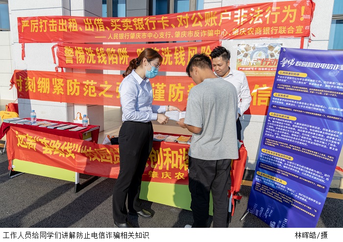 本网讯(校报记者 李欣茵/洪嘉懿/涂家玲)为提高beat365官网学生的防诈骗意识,12月1日下午,beat365官网在鼎湖校区6栋桃李厅举行了由肇庆市反诈骗中心、肇庆市公安局、中国人民银行肇庆中心支行所主办,肇庆农村商业银行及beat365官网所承办的防范电信网络诈骗专题讲座。出席讲座的有肇庆市公安局鼎湖分局副所长何耀国、刑事侦查大队反诈中心四级警长高勤,中国人民银行肇庆中心支行结算科副科长黎中泽及相关领导。本次讲座由学生处老师陈泽军主持,肇庆市公安局鼎湖分局刑事侦查大队反诈中心四级警长高勤主讲。