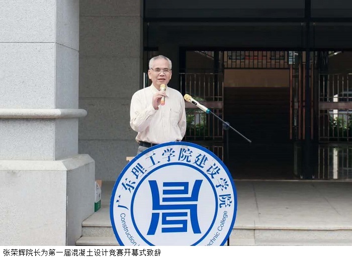 张荣辉院长为第一届混凝土设计竞赛开幕式致辞。张荣辉院长阐述此次大赛是在坚持应用型本科院校的办学特色前提下,为我院工程类专业学生开展的一场技能大赛。他希望参赛队伍通过此次大赛可以提高配置高强度混凝土的动手能力,并预祝选手最后取得好成绩。