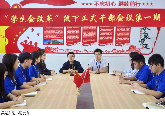 会议尾声,吴楚升副书记对冷书记新任领导岗位和新上任的团委学生会书记和副书记表示祝贺。此次改革和新鲜血液的注入,为团委学生会增添了强劲活力,吴副书记希望团委学生会今后能够在思想上打破常规、不断创新;工作中勇于担当,勇创佳绩。
