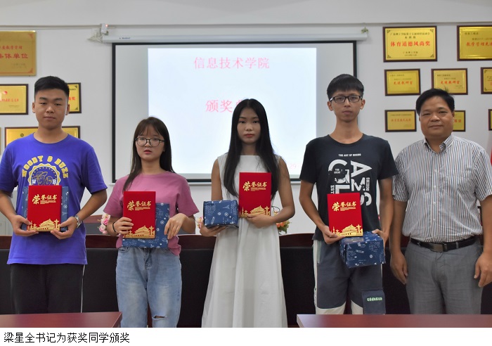 本网讯(信息技术学院 贺思琪)为表彰疫情期间积极参与防控工作和相关比赛的同学,9月29日,信息技术学院学生党支部于振华楼203室举行颁奖典礼。出席本次典礼的有信息技术学院党总支梁星全书记、学生党支部书记胡娇铃老师以及我院全体辅导员。