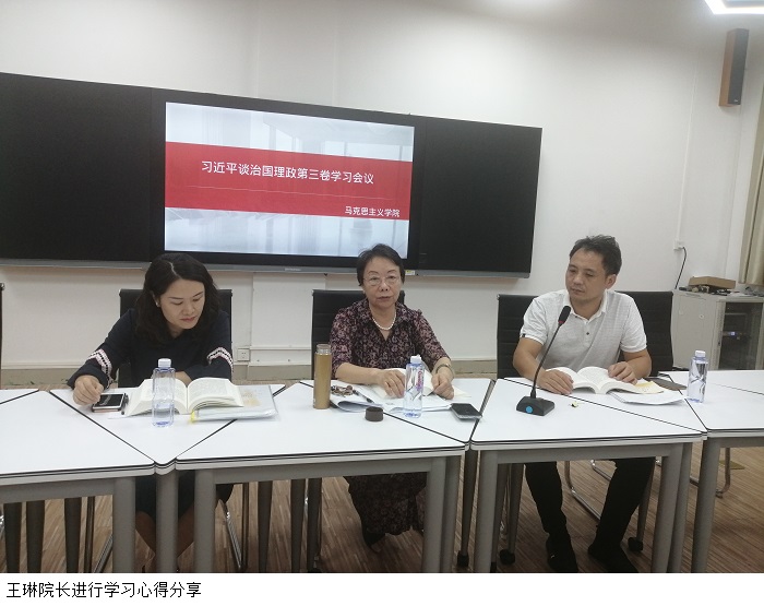 随后,学院党政班子成员、各教研室主任、教师围绕《习近平谈治国理政》(第三卷)内容,结合日常工作实际,进行了广泛而深入的交流,张晨曦、刘苗等新入职教师也纷纷分享了自己的学习心得。