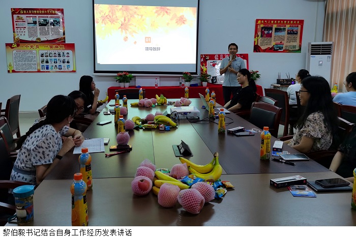 黎伯毅书记结合自身工作经历发表讲话。黎伯毅书记表明教师们应及时且妥善地处理学生的问题,从心理上、生活上、学习上去关心学生,从而形成良好的师生关系。