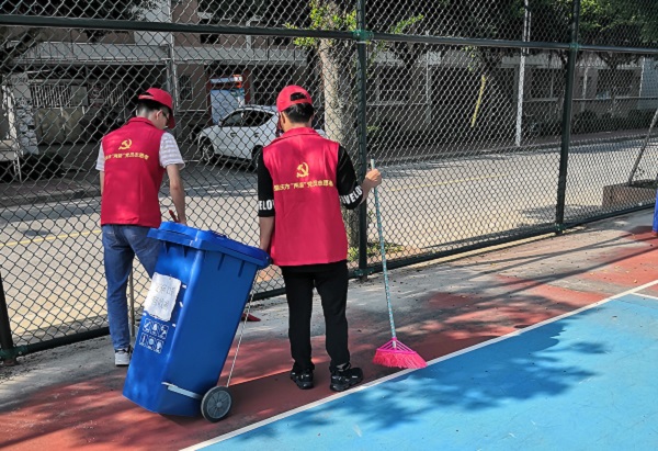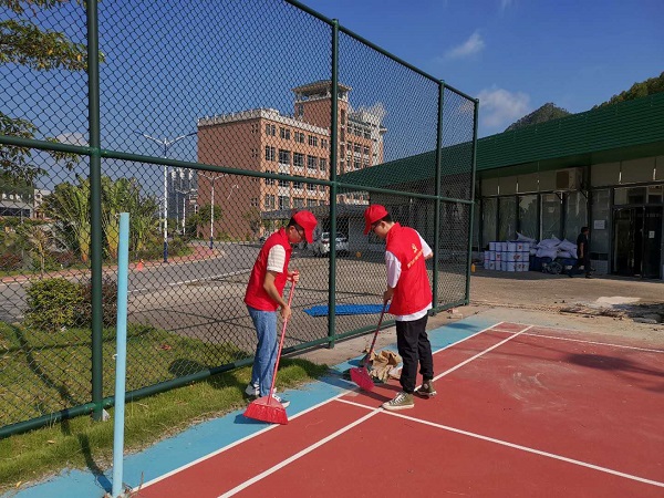本网讯(信息技术学院 纪以欣/林景鸿)为落实肇庆市的“创文”工作,营造良好的校园环境,信息技术学院创文志愿者响应学校党委的号召,踊跃报名参加,克服困难,提前返校投入到创文工作中。在党总支梁星全书记和学生党支部书记胡娇铃老师的带领下,于8月25日开展校园创文清洁活动。