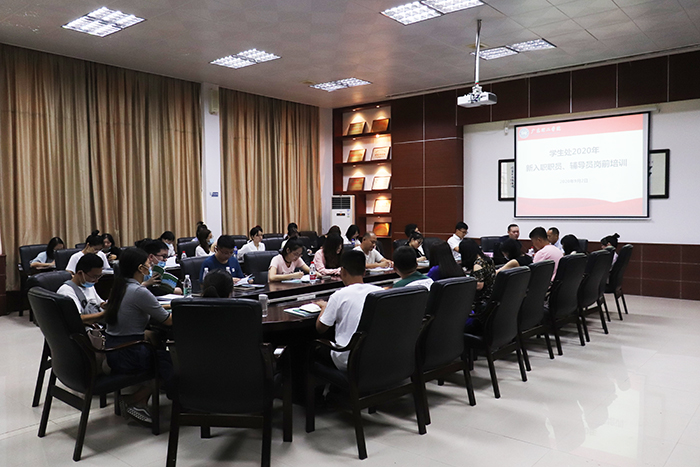 本网讯(学生处)为深入贯彻落实习近平新时代中国特色社会主义思想和全国高校思想政治工作会议精神,进一步落实《普通高等学校辅导员队伍建设要求》,推动beat365官网辅导员队伍建设,9月2日,学生处在高要校区行政楼101会议室举行了2020年新入职职员、辅导员岗前培训。学生处处长谭蒙革、副处长彭雪帆出席并主讲培训内容。培训由学生处黎嘉诚科长主持。