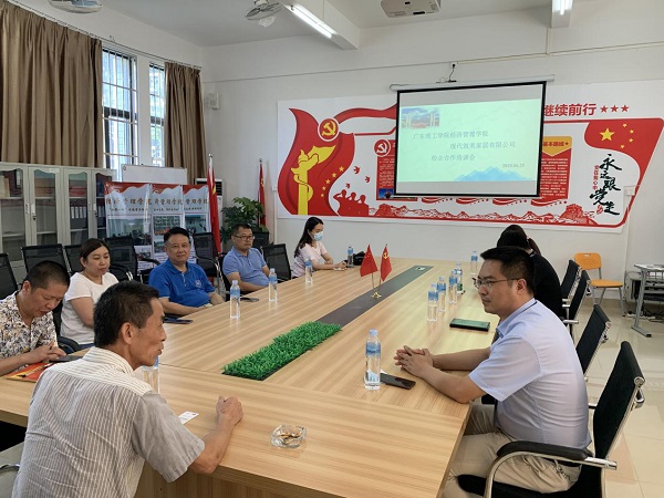 本网讯(经济管理学院)6月29日下午,经济管理学院与肇庆市现代筑美家居有限公司举行了校企合作洽谈会。肇庆市现代筑美家居仓储物流中心副总经理许仁宗、人力资源中心培训主管黄梓涛、仓储物流中心综合组长曾梓莹,学校就业办副主任梁杰,经济管理学院院长季六祥、副院长魏嫚、副院长陈东旭,党总支书记甘怀南、副书记吴楚升出席会议,由经管学院党总支书记甘怀南主持会议。