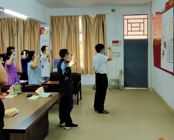 会议中,党员老师们还强调:“在疫情期间,作为中国共产党,更加要以身作则,需要主动出击,带领全国人民一起抗疫,作为预备党员也不例外,服从党的安排,积极配合工作,当然平时的工作也不能懈怠,而且还要主动参与抗疫的志愿者活动,给抗疫行动献出自己的一份力。”