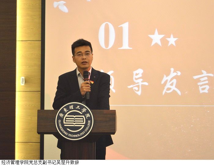 会议伊始,经济管理学院党总支副书记吴楚升对获奖榜样表示热烈的祝贺与肯定。其次,他表示本次活动对经济管理学院的文化建设发挥了积极的作用,推动了经济管理学院良好学风的形成。最后,他勉励经管学子,守正创新,踔厉奋发。