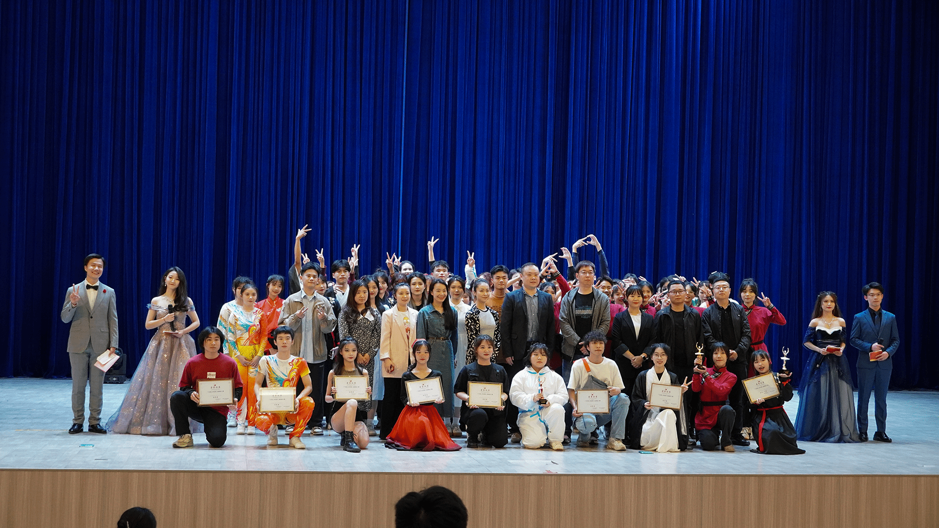 本网讯(新闻中心 冼芯宇/谢卫如/陈轩正/刘松坡 | 摄影 张敏/陈超华/校团委)3月7日晚,以“学习二十大,舞动新时代”为主题的第三届舞蹈大赛在高要校区翔中堂举行。党委宣传部部长张冬出席。本次大赛由校团委书记彭雪帆、副书记邢媛满、魏娜娜老师,肇庆学院音乐学院舞蹈教研室主任温笑杰、肇庆市歌舞团舞蹈演员陈璐老师担任评委。各院系老师及学生代表到场观看。