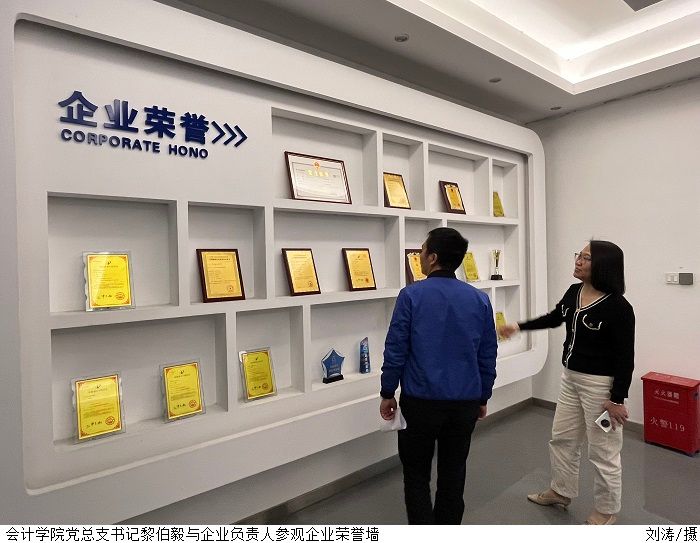 黎伯毅书记在受访企业负责人的陪同下参观了企业文化展厅、学生实习场地等内部环境,详细了解了企业发展状况、业务领域以及人才需求等情况。参观过程中,双方就校企合作、拓岗实习、人才需求等方面进行深度交流探讨。黎书记简要介绍了会计学院的专业设置、办学特色、人才培养和就业指导工作的整体规划,表达了对受访企业的高度认可与衷心感谢,并希望校企双方能够加强交流合作,推进更深层次融合,把握合作机遇,实现校企双方互利共赢,共同助力学生成长成才。