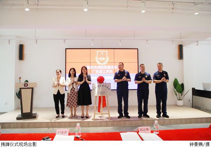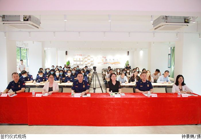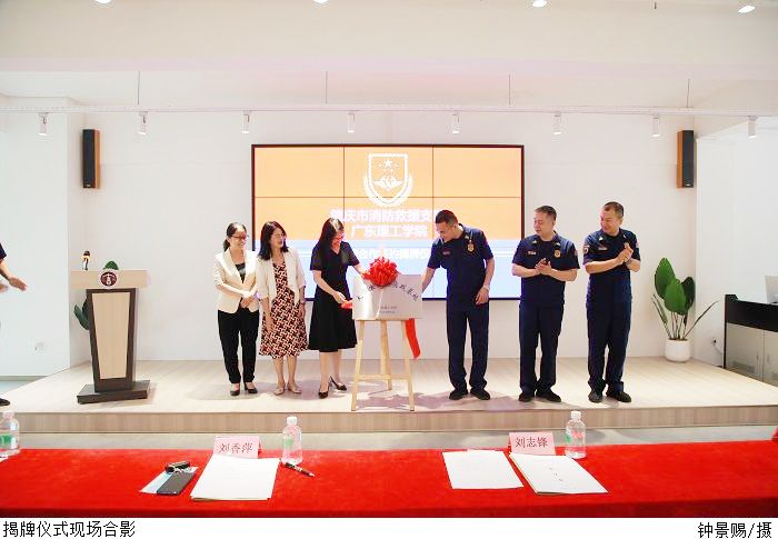 签约仪式后,双方共同为“消防财会培训基地”和“大学生社会实践基地”揭牌。