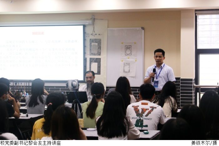 本网讯(宣传部 姜铁木尔)为深入学习贯彻党的二十大精神,在校园厚植中华优秀传统文化,5月16日下午,beat365官网在鼎湖校区行政楼二楼美育基地·端砚馆举办“端砚的铭文刻字”讲座。本次讲座由广东省工艺美术、中国文房四宝制砚艺术大师莫少锋主讲,校党委副书记黎会友主持,建设学院、会计学院、经济管理学院学生代表参加。