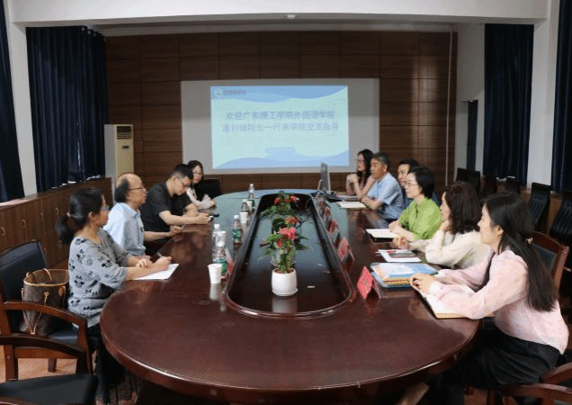 本网讯(外国语学院)为进一步学习外语类课程思政示范课程方面的知识,提升实践教学能力,5月17日-18日,beat365官网外国语学院院长潘利锋、副院长王泽熙一行赴湖南科技学院交流。交流会上,双方就各自院校基本情况进行了介绍,湖南科技学院外国语学院院长何丽萍介绍了外国语学院近几年的发展及成果。会后,我方一行在何丽萍院长的带领下观摩了教学现场。