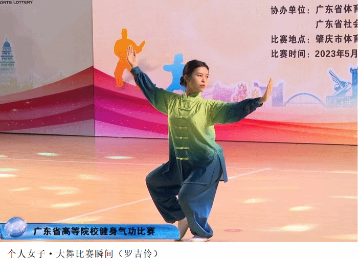 据悉,本次比赛由广东省社会体育和竞赛中心主办,肇庆市文化广电旅游体育局承办。比赛分集体和个人两大类,包括易筋经、五禽戏、六字诀、八段锦、大舞、马王堆导引术、导引养功十二法、太极养生杖功法等竞赛项目。这是疫情防控政策优化后,广东首次举办的省级健身气功比赛,吸引了来自省内24支高等院校代表队近200人积极参加。