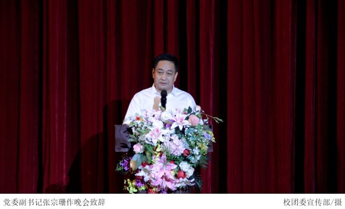 晚会伊始,党委副书记张宗珊为本场晚会致辞,他首先向全体新生同学们表示热烈欢迎,并提出三点希望:一、以理想信念照亮奋进之路,青年的理想信念关乎国家未来;二、以勤奋学习作为立身之本,充分利用学校的平台和资源,在勤思细研中涵育创新意识,在躬身实践中培养专业特长和综合素质;三、以崇德向善涵养健康人格。最后,号召新生们继承和弘扬五四精神,在新征程中续写奋楫争先的精彩华章!
