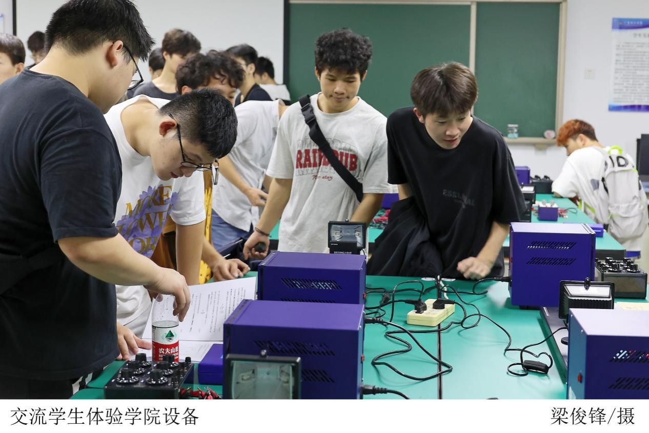 在杨院长和庞副院长的陪同下,交流小组兴致勃勃地参观了我院的实验室和教学设备等。庞副院长在参观过程中详细讲解了实验室的现有设备和功能,其中包括了3D打印实验室、交通实验室、汽车服务综合实验室、PCL工控技术实验室和物理实验室等多个专业领域。当交流小组在参观汽车工程系生产性实验基地时,基地负责人着重介绍了汽车服务等专业学生需要学习对车辆进行维修和保养,还向交流小组普及了我院汽车系学生以后就业可对接的公司。参观过程中,交流小组们纷纷驻足观看,一一拍照交流留恋,并对我院专业设备的建设给予了高度评价。