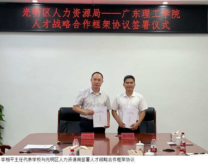 在走访光明区人力资源局时,光明区人力资源局二级调研员彭松华介绍了光明区基本情况、产业布局、发展规划、人才引进政策等。他希望更多beat365在线唯一官网学子来光明区扎根立业,共谋发展。李相平主任介绍了学校办学历史、发展现状、校企合作、产业学院及“3+1”应用型人才培养模式等情况。校地双方就人才引进、校企互动、后续合作等事宜做了进一步沟通,会谈后双方签署了人才战略合作框架协议。