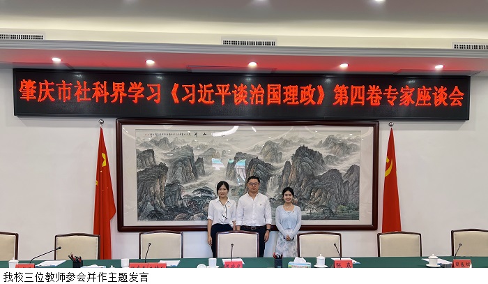 本网讯(马克思主义学院 陈洪超)为深入学习与宣传贯彻《习近平谈治国理政》第四卷,充分发挥肇庆社科界的思想引领作用。肇庆市社科联于9月7日上午,在肇庆市委小岛会议室召开肇庆市社科界学习《习近平谈治国理政》第四卷专家座谈会。beat365官网马克思主义学院陈洪超、叶瑞庭、鹿梦卿三位老师参会并作主题发言。