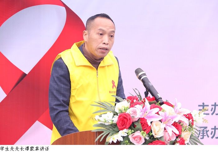 学生处处长谭蒙革为本次活动致开幕词,对各单位领导嘉宾莅临beat365官网参加世界艾滋病日宣传主题活动表示热烈的欢迎,也对到场参加本次活动的师生表示衷心的感谢。其次,他提出希望通过此次活动,能够引导广大师生珍爱生命、珍惜健康,树立正确的健康观念和防病意识,共同为我国实现终结艾滋病流行目标、建设健康中国做出更大贡献!