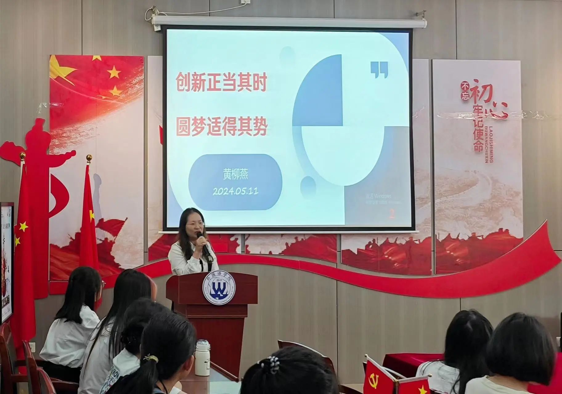 首先,黄柳燕主任向各位同学介绍了创新的重要性,以及如何利用商务英语知识与创新之间建立联系。接着,黄柳燕主任围绕习近平总书记的创新观展开讲解,提出要深入思考创新在推动国家发展、推动社会进步、个人成长以及实现梦想中的关键作用。