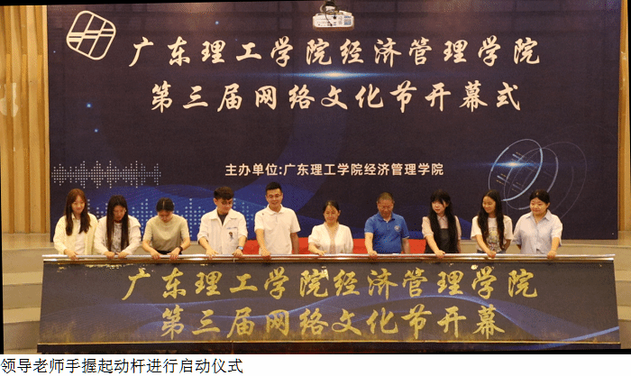 随后,与会领导、嘉宾手握起动杆,进入倒计时环节。伴随着掌声与欢呼声,第三届网络文化节盛大开幕,经济管理学院正式开启网络文化作品的创作、评选、宣传的环节,致力于推动网络新时代文化精神的传播和实践。