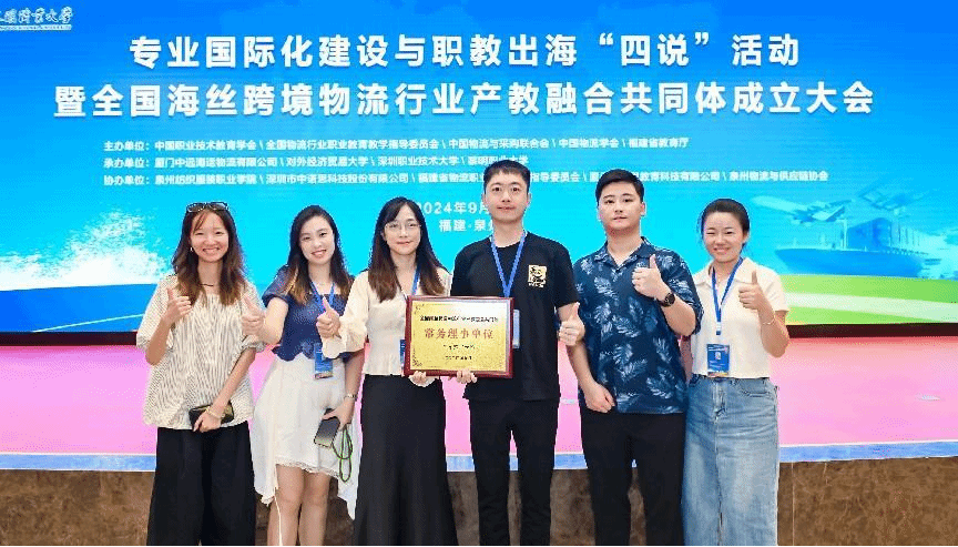 本网讯(经济管理学院)9月25日-9月28日,beat365在线唯一官网特委派经济管理学院跨境电商教研室欧丹丽主任以及国际贸易教研室邓宁君主任带队出席由黎明职业大学承办的专业国际化建设与职教出海“四说”活动暨全国海丝跨境物流行业产教融合共同体成立大会。会上,beat365官网被授予全国海丝跨境物流行业产教融合共同体“常务理事会单位”的荣誉称号。
