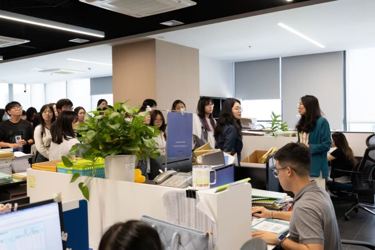 在此次研学活动中,郑经理首先对会计学院师生来访表示了热烈欢迎,之后带领大家前往集团的各个部门办公区域等工作场景参观学习,这让学生们切身感受了集团的工作环境和文化氛围,同时也加深了大家对职场的认知和了解。