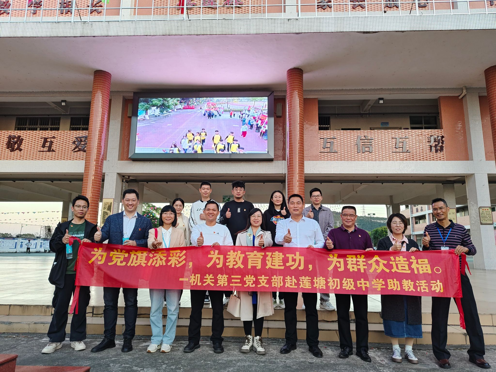机关第三党支部党员代表与莲塘镇初级中学党员代表合影