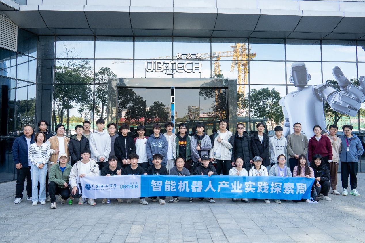 活动首日,师生们抵达深圳,首先参观了优必选展厅,正式开启了智能机器人产业探索之旅。在这里,同学们与优必选的人形机器人“熊猫”进行握手互动,全方位体验了智能机器人在商用服务、物流、康养、教育等领域的最新技术突破与实际应用案例。