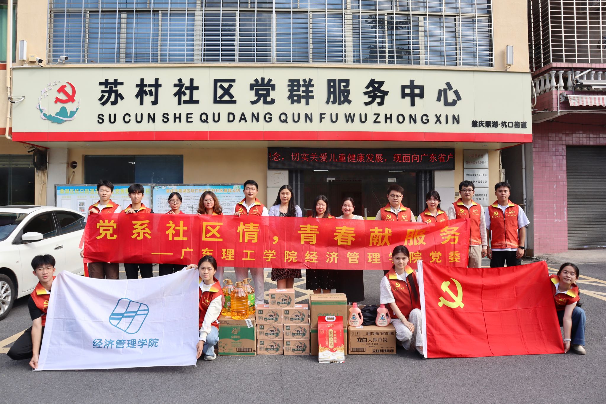 本网讯(经济管理学院 蒋天麟 阮豪胜)为深入学习贯彻党的二十届四中全会精神,引导广大党员深刻领会全会核心要义与实践要求,本次党日主题活动旨在弘扬中华民族传统美德,发挥党员的先锋模范作用,2025年10月27日,在经济管理学院党委副书记吕媛、魏甫龙、教工第一党支部副书记吴迪、学生第一党支部书记侯小孩、学生第二党支部书记刘任、学生第三党支部书记赵静静的带领下,学生党员代表共同前往鼎湖区苏村社区开展“党系社区情,青春献服务”情暖重阳慰问活动。
