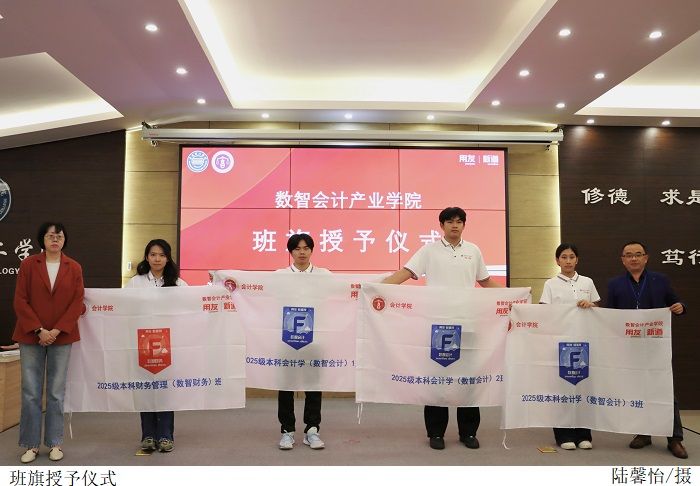 舒程强调,在数字经济蓬勃发展的今天,会计行业正经历着从传统核算向数智化管理的深刻变革,学校与用友新道联合成立数智会计产业学院,正是顺应行业发展趋势、深化产教融合的重要举措。他希望2025级新生能够把握时代机遇,珍惜校企合作带来的优质资源,在理论学习与实践锻炼中提升数智素养,成长为适应行业需求的复合型人才。