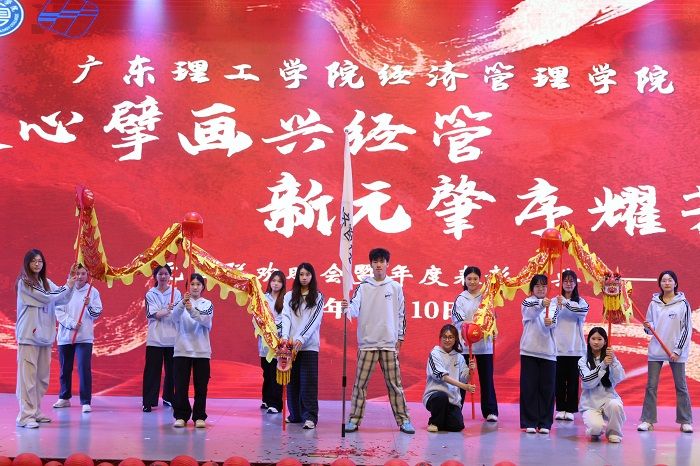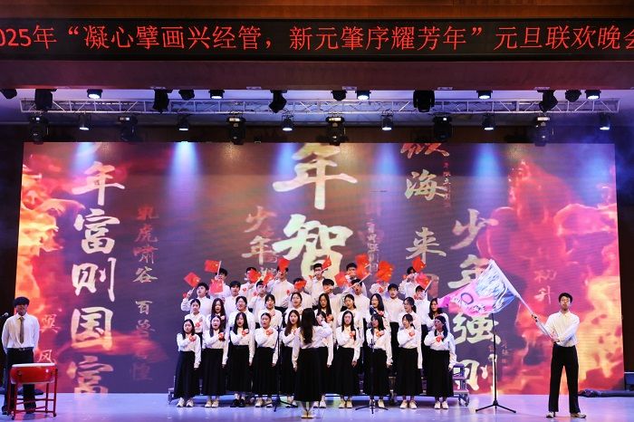 晚会以经管团委、学生会的舞龙表演开场,迅速点燃现场氛围。随后,黎会友副书记致辞,寄语师生新岁奋发;学院院长赵燕、党委副书记吕媛分别总结教学、党建与学风建设工作,明晰未来方向。
