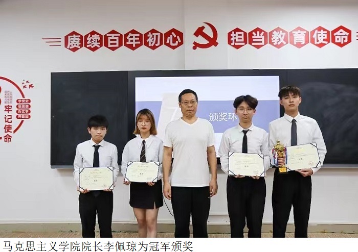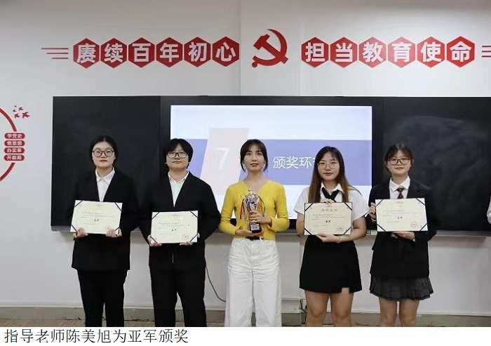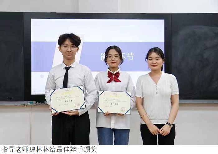 此次比赛的亮点不仅在于辩手们精彩的比拼,还体现在观众答题及评委的点评环节。在严谨的评分标准下,评出了冠、亚、季、优四支获奖队伍及两名最佳辩手。李佩琼院长、陈美旭老师、庞明明老师、王玲老师、魏林林老师为获奖代表颁奖。