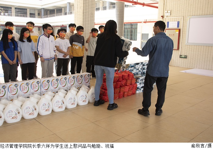 本网讯(经济管理学院 周紫晴)正值雷锋月,3月30日下午,经济管理学院五栋大厅开展“学雷锋、送温暖、献爱心、传真情”活动,为家庭经济困难学生发放慰问物资,传递对家庭经济困难学生的深切关怀。组织部部长廖振宇、经济管理学院院长季六祥、党总支书记甘怀南、副书记吴楚升出席活动。