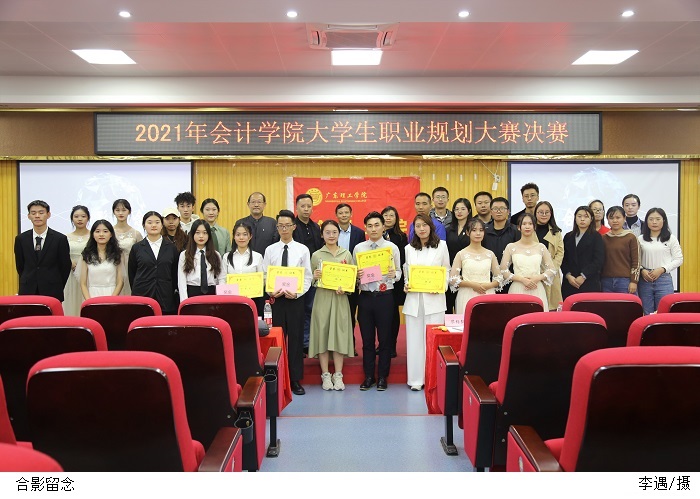 本网讯(会计学院 谭智聪)为普及大学生学业发展及职业规划理念,提升专业能力和职业素养,11月22日晚,会计学院在高要校区42栋101举行了大学生职业生涯规划大赛决赛。创新创业学院院长简国明、自考办主任黄声巍、教务处副处长周红梅、创新创业学院副院长朱亚伟,王中伟老师担任本次决赛评委,会计学院党总支书记黎伯毅、副院长郑春晓、党总支副书记徐永明出席。会计学院四大组织代表及学生代表到现场观看比赛。