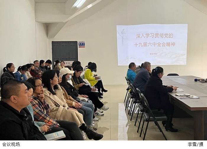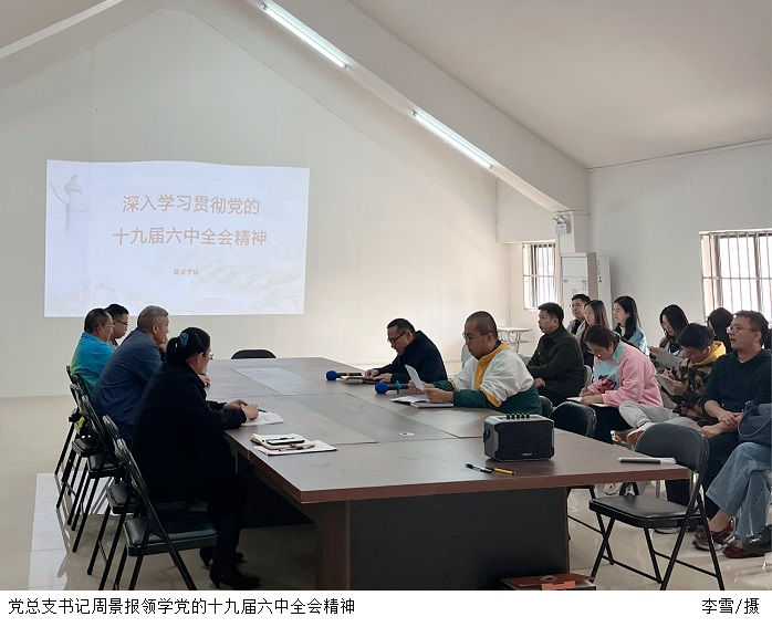 本网讯(建设学院 李雪)11月23日,建设学院再次召开深入学习贯彻党的十九届六中全会精神专题学习会。会议由建设学院党总支书记周景报主持,全体专任教师参加。