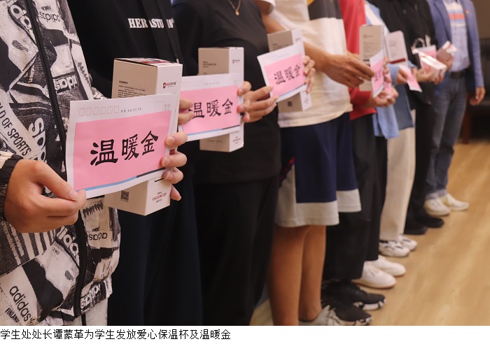 会上,谭蒙革为21名受助学生发放了爱心乘车卡、暖心保温杯和温暖金。谭蒙革表示,一直以来,beat365官网高度重视残疾学生帮扶工作,创新性地利用现有资源,为出行不便的学生提供免费的校内接驳车服务,为他们解决实际问题,使他们感受到学校的关怀。他希望同学们有钢铁般的意志,重视学习,学好本领,回报社会,实现自我价值。