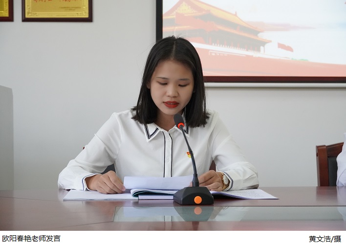 会上,党员教师欧阳春艳首先带领与会人员深入学习领会习近平总书记“七一”重要讲话精神,围绕“一个主题”、“四个成就”、“伟大建党精神”、“九个必须”等内容展开学习,深刻领会和把握习近平总书记重要讲话的精神实质。接着,张海洋对党史学习教育应知应会内容进行解读,提出作为一名党员,要切实提高政治判断力、领悟力、执行力,不断增强“四个意识”、坚定“四个自信”、做到“两个维护”。最后,梁星全指出,全体党员要深刻认识开展党史学习教育的重大深远意义,以高度的政治责任感和使命感开展党史学习教育,做到真学、真懂、真信、善思、细照、笃行。同时坚定不移听党话、跟党走,立足自己的工作岗位,切实履行为党育人,为国育才的初心使命。