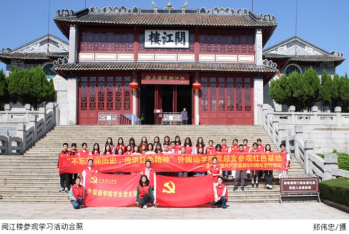 本网讯(外国语学院 林主林、钟玉君)为进一步加强爱国主义教育,推进党史学习教育走深走实,外国语学院党总支于10月26日下午组织教师前往叶挺独立团团部旧址纪念馆——阅江楼参观学习。学生党支部书记尚旭杰、党员教师代表以及各建党对象参与活动。
