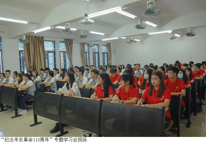 本网讯(经济管理学院)为进一步激发经济管理学院师生的爱国热情,深化其自身的使命担当。10月9日上午,经济管理学院党建中心于5栋203室召开“纪念辛亥革命110周年”专题学习会。会议由经济管理学院党总支副书记吴楚升主持,学生党支部书记赵雪娇、党员发展对象和党建中心工作助理共179人参会。
