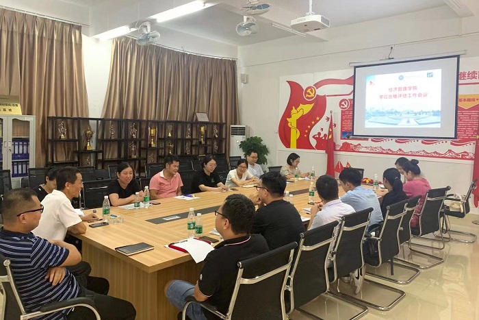 本网讯(经济管理学院)为进一步提升学科与学位点发展新高度,全面提升人才培养质量,7月1日下午,经管学院在4栋103会议室召开学位合格评估工作会议。季六祥院长、魏嫚副院长、陈东旭副院长、党总支吴楚升副书记、办公室李佳妍主任以及全体评估小组成员参加。