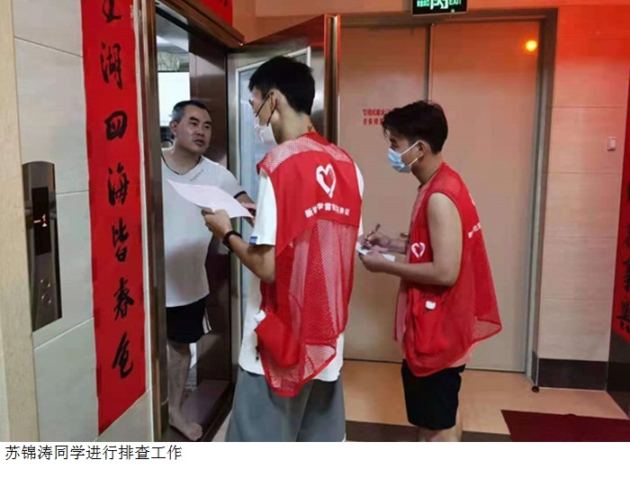 苏锦涛同志在此次活动中参与新冠疫苗接种摸底调查工作,登记每家每户疫苗接种情况(包括外出大学生)。苏同学表示,此次活动有利于强化基础群众抗疫责任担当,有利于抓好战疫情、防风险、保安全、护稳定等各项措施的落实,为打赢疫情防控阻击战创造安全稳定的政治社会环境。