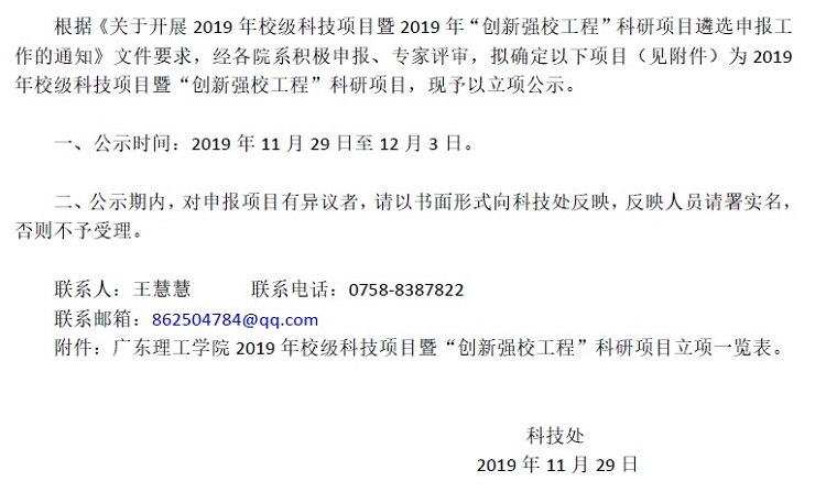 beat365在线唯一官网申报《2019年校级科技项目暨“创新强校工程”科研项目》立项公示