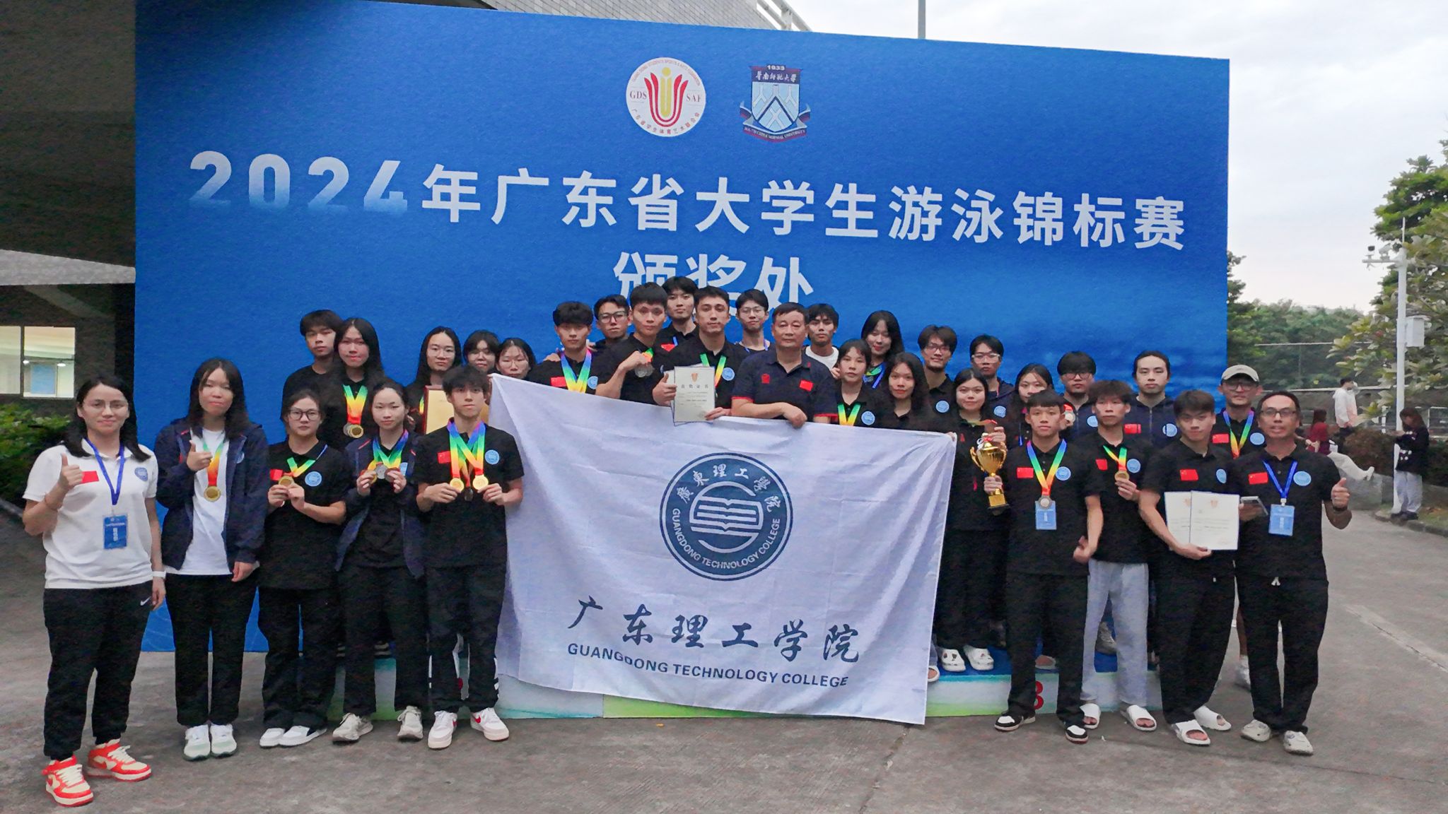 本网讯(体育学院)2024年广东省大学生游泳锦标赛于11月8日至10日在华南师范大学大学城校区盛大举行。beat365官网游泳队在领队夏磊和王群英,以及谢剑鸣、杨雪君老师的带领下,参加了广东省大学生游泳锦标赛的甲组和乙A组比赛。经过三天激烈角逐,最终beat365官网学子在本次比赛中夺得6枚金牌、5枚银牌、8枚铜牌、及多项前八名的好成绩,奖牌总数创造历史新高!同时获得乙A组团体总分一等奖、乙A组团体总分第三名、甲组团体总分二等奖、甲组团体总分第十名的好成绩。