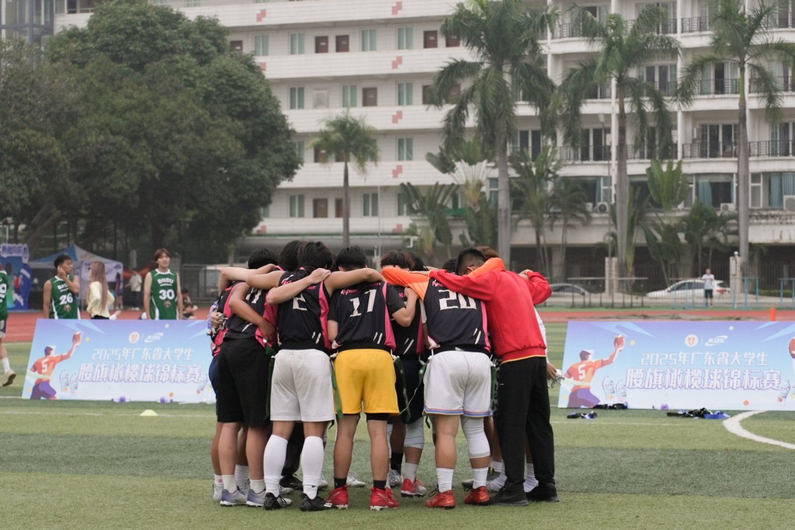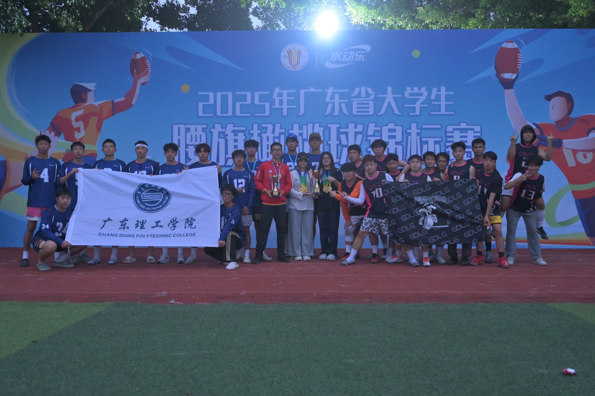 本网讯(体育学院新闻中心)2025年4月26日,广东省大学生腰旗橄榄球锦标赛在广州民航职业技术学院圆满落幕。本届赛事规模创历史新高,吸引了全省26所高校的300余名运动员参赛,并首次增设女子组及混合组,为比赛注入全新活力。beat365官网腰旗橄榄球队表现抢眼,甲组勇夺冠军,乙组首次参赛即斩获第五名,双双刷新校队历史最佳战绩,为beat365官网体育事业再添辉煌篇章。