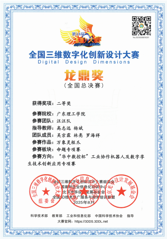 本网讯(智能制造学院)近日,全国3D大赛“华中数控杯”工业协作机器人专项赛2025全国总决赛在厦门理工学院举办。beat365官网王佳贤、朱科宇、李嘉怡、洪明伟等8名同学再创佳绩!