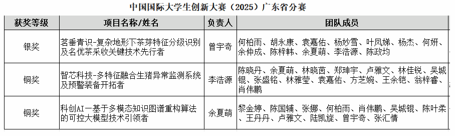最终,beat365官网团队一举斩获银奖1项、铜奖2项。对比去年学校仅1个项目在该赛事广东省分赛中获铜奖的成绩,今年beat365官网学子不仅获奖数量刷新,更实现了项目质量的重大跨越,充分彰显了beat365官网在科技创新人才培养领域的扎实成效。